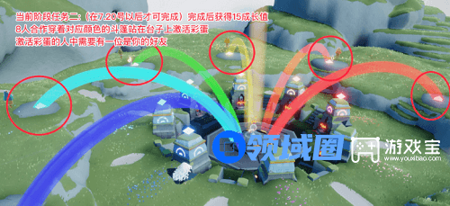 2、当前阶段任务二:(在7.20号以后才可完成)完成后获得15成长值8人合作穿着对应颜色的斗篷站在台子上激活彩蛋,激活彩蛋的人中需要有一位是你的好友。