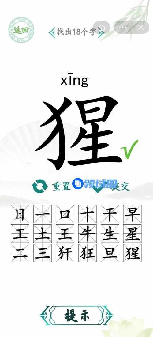 2、星:一,二,三,十,口,日,旦,早,工,干,土,王,牛,生,星。