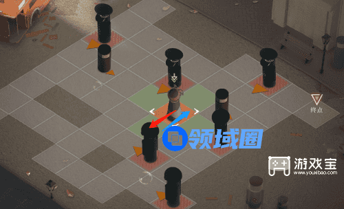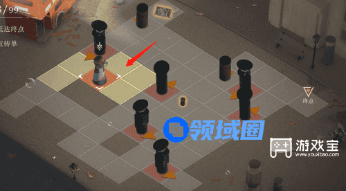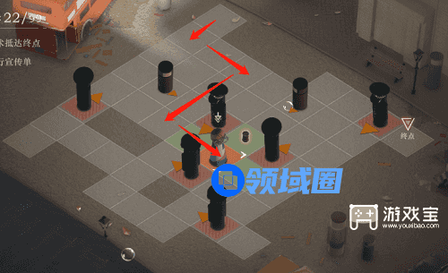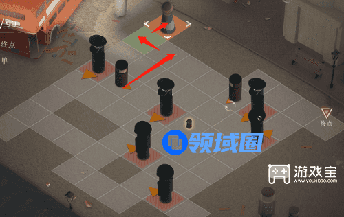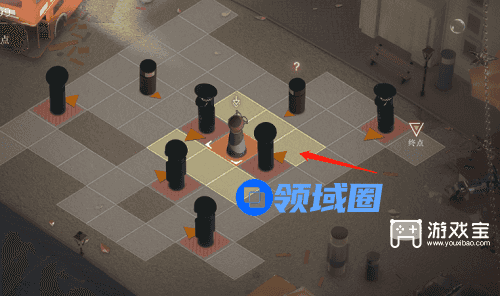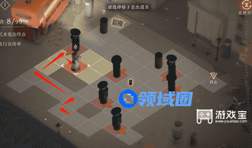4、这里我们需要出来拿到另外一个道具,利用这个道具把游客引到可以阻挡警察的位置,我们先来到下图这个位置,行动路线图如下。