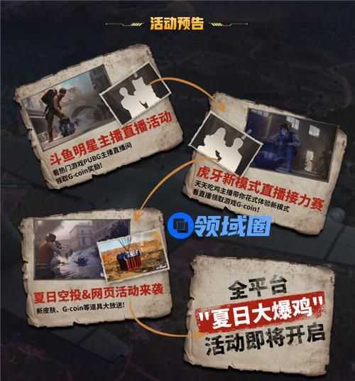 为庆祝新模式上线,官方还准备了各种各样的丰富活动!多个直播平台的主播将与我们一起体验全新的蓝圈攻防模式。看直播就送G-coin,游戏内也有全新的签到活动。还有夏日主题的网页活动来袭,全平台“夏日大爆鸡”都将在后续上线开启。这个暑期就在PUBG,在体验全新模式之余,还有N倍快乐等你来挖掘!