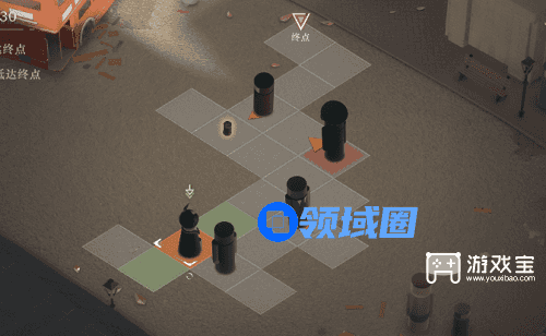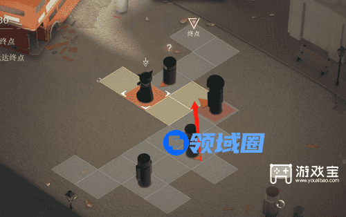 ②第二步我们可以一直畅通无阻的走到交叉警察旁边的交叉路口,这个时候我们往上走先把道具捡到手,把道具仍在警察的前面挡住警察前进的道路。
