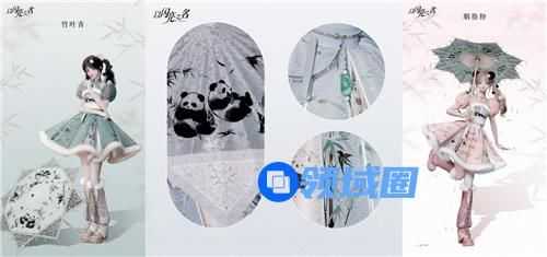 五星套装“酣竹滚滚”以熊猫的黑白色系打底,新中式的版型对应国宝,并以水墨绘制竹影斑驳,还原大熊猫自由在野外生存时的美好景象。