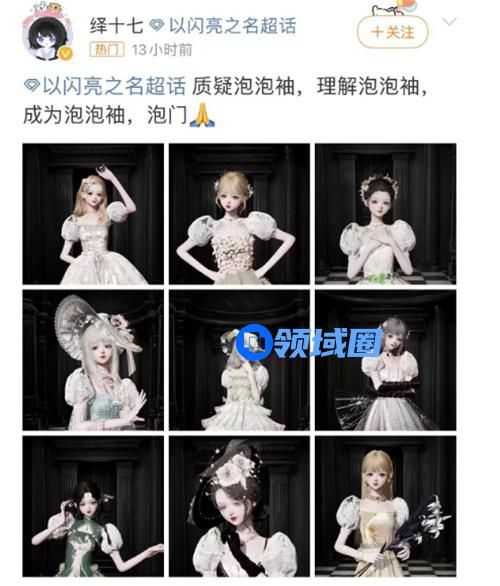 说回以闪这两套定制套装,酣竹滚滚的可拆卸泡泡袖让不少玩家找到了搭配的真谛,实现泡泡袖自由,成功加入“泡门”。
