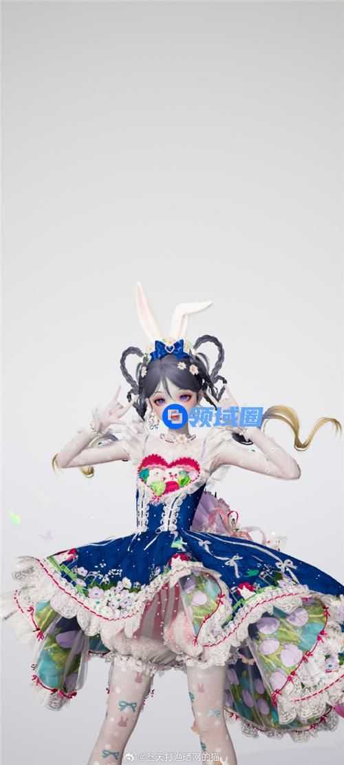 五星套装“绒兔心语”则是把一整片的花海都绘制在裙摆之上,伞状的裙摆,花瓣飞扬,染色是最近很火的多巴胺配色。整套设计蕴含祈盼繁花环绕的夏天的祝愿,和野生动物使者伊伊一起为伊犁鼠兔发声,祝愿它们食物充足,四季无忧。