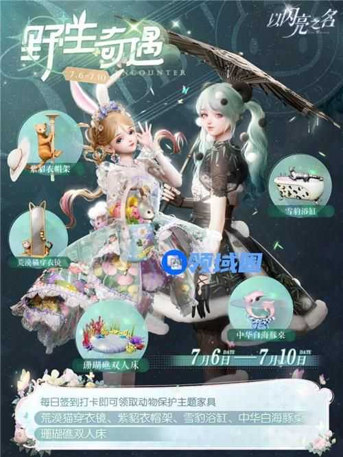 看过了可爱的大熊猫、伊犁鼠兔主题的小裙子,以闪亮之名还推出还包含了荒漠猫、雪豹、中华白海豚等动物形象创意主题家具,玩家只要参与野生奇遇公益活动进行签到,就能获得啦~