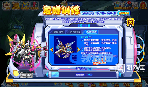 需要机甲女王任意一阶,携带宠物仅为机械系,数量要求:1~3只;挑战成功则获得8点复检进度。