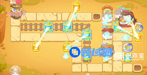 1、两边各放上一个正电塔,可以先打轨道上箱子。