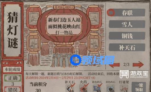 江南百景图在最近重新上线了猜灯谜的活动,玩家需要根据系统给出的灯谜题目来选择正确的答案,猜对后即可获得奖励,游戏宝小编带来江南百景图猜灯谜答案大全2024,希望可以帮助到大家。