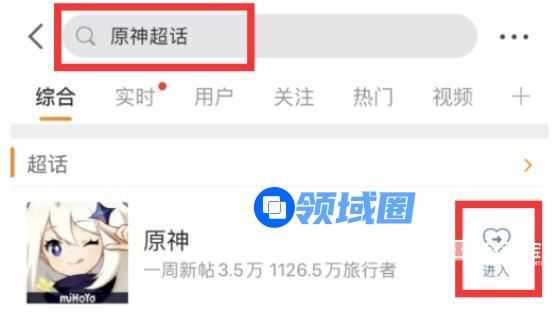 1、打开微博app,在搜索栏中搜索“原神超话”, 随后点击进入超话。