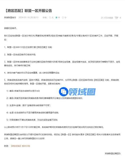 除了游戏内的突破式创新,英雄联盟国服也在新赛季迎来了一项重大技术突破。自从国服上线以来,受限于巨大的地理跨度和网络延迟的物理限制,英雄联盟国服一直采用多个大区服务器的运营模式,这虽然方便了玩家选择延迟更低的服务器进行游戏,却也限制了玩家们与不同服务器的朋友们开黑。这种局面在2024年得到了改变。英雄联盟国服已经于近日开放了跨区匹配系统的第一个大区联盟一区,这也代表着国服首次打破了横亘在玩家之间12年之久的技术壁垒,实现了联盟大区内的跨区匹配,并且还将继续推出其他大区,将原本的服务器一一囊括其中(每个大区所包含的服务器请关注官网公告)。面对千万级玩家十多年的数据积累,国服敢于挑战技术难点,在维持原有区服系统稳定的情况下为玩家提供新鲜且流畅的跨区匹配体验,对于一款运营十二年之久的国服网游来说,是一次非常勇敢而且可贵的尝试。