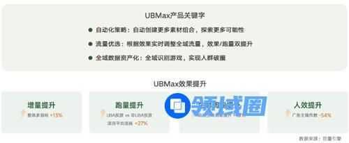 如部分广告主在投放中,对效率要求更高,希望可以在实现更多自动化素材组合,提升效率,并实现流量通投。基于此,巨量引擎以UBMax通过自动化投放、流量通投以及全域数据资产化帮助广告实现更大跑量。