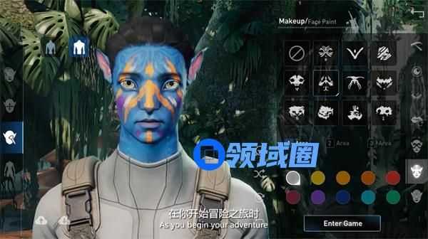 除此之外,为了让玩家更有IP代入感,该作还搭载了完善的捏脸系统,玩家不仅可以自定义脸型、发型、五官、油彩、生物荧光等面部细节,还能借助各类时装及装饰自定义身体外观,这意味着玩家可以化身理想中的阿凡达形象,在潘多拉星球探索与战斗,甚至驯服各种奇珍异兽当坐骑等等,享受到更沉浸式的体验。