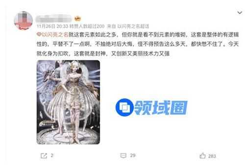 从预热开始,这套发条之心套装就引起了玩家的关注和多方猜测。而正式的套装一经曝光,“遥遥领先”、“果然是炫技之作”、“难怪提前了这么久预热,果然不负众望”等关键词就被玩家顶上了各大社群的评论区。甚至有玩家在看到实机展示PV之后,发出了:“这一刻一定要为以闪亮之名卖命”的梗图和评论,虽然略有夸张,但也实打实展现出了这一套发条之心套装在玩家心目中的受追捧程度。