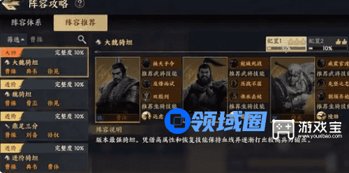 ①“骑坦流”顶尖阵容,又被称之为“虎卫队”,该阵容依靠曹操自带的高额减伤,搭配上典韦与许诸,其特点便是能抗能打,尤其是后期完整版成型后,城战方面表现堪称完美,但该阵容的缺点也比较明显,那就是获取难度较高。