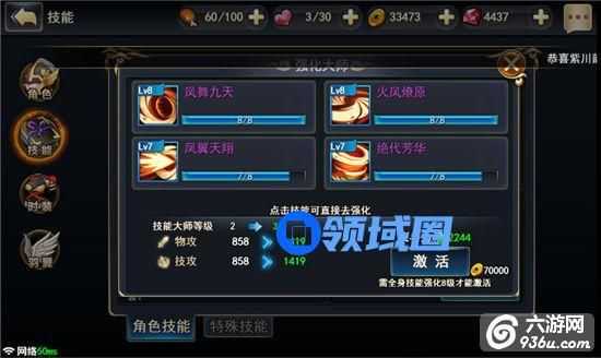 和装备一样,技能也是有技能大师的,当所有技能达到了一定等级后,就能从技能大师手上提升等级,增加战力,但是和装备不一样的是,技能大师提供的战力不会下降。
