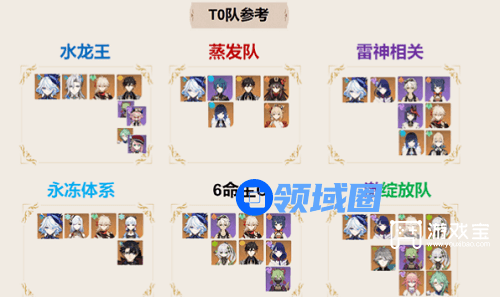 6、种门:水神+芭芭拉+草主/柯莱+雷火触发器;