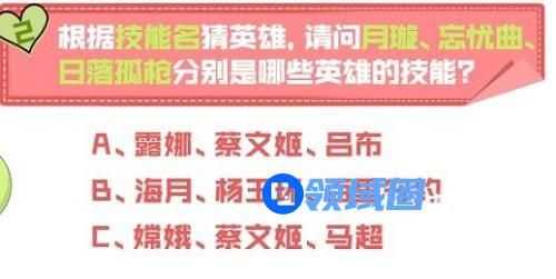 2、根据技能名猜英雄,请问月璇、忘忧曲日落孤枪分别是哪些英雄的技能?