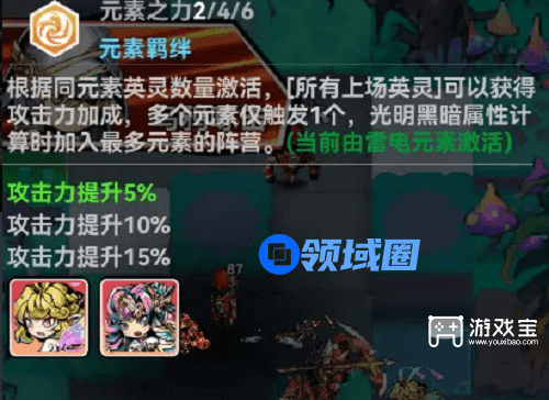2、阵容可激活双元素羁绊,攻击力提升5%