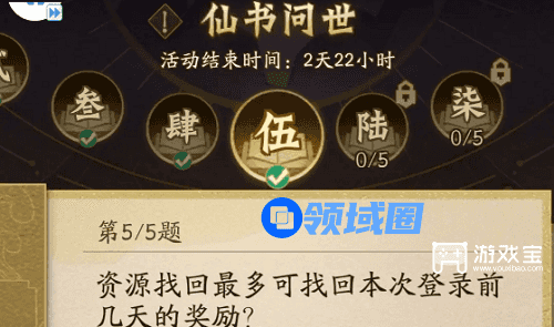 5、资源找回最多可找回本次登录前几天的奖励?