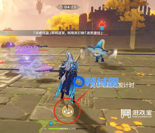 战斗关卡。击败敌人会积攒「灵感结晶层数」,当头顶有感叹号的敌人出现后,靠近其等待「灵感结晶」迸发(40秒,会在屏幕下方提示),迸发会对敌人造成大量伤害,击败三个有感叹号的敌人即可挑战成功。