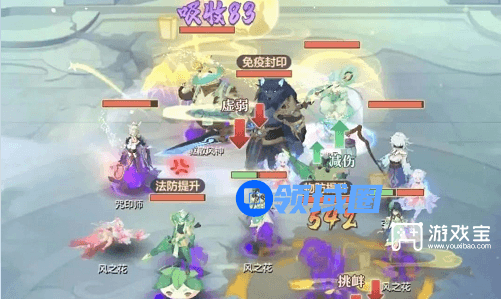 细节来了,这里有个熊猫可以把毒振奋换成物爆和闪爆,让他去挂debuff给集火。不过不能第一回合挂,因为第一回合需要嘲讽天兵和对面九玄。操作思路各位小伙伴别急后面会很详细的讲解,让带振奋的熊猫去单防对面的九玄。