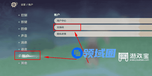 2、在游戏的设置账户中找到兑换码,输入上面的兑换码以后就可以领取到奖励了。