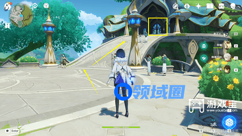 1、来到下图这个传送点,抵达传送点后,往教令院大门过去即可触发世界任务「普尔比鲁尼之诫」