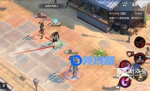 阿尔移动至buff格并攻击敌人,之后再次原地不动攻击敌人