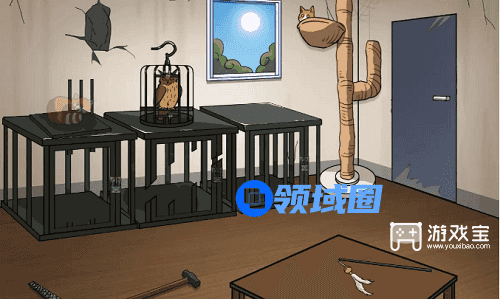 6.拖动逗猫棒逗猫2次,等到晚上,猫头鹰逃走。