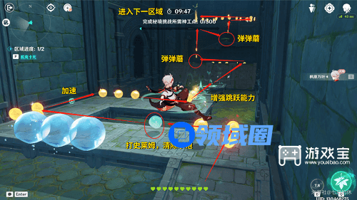 1.开启挑战后,上平台减金币,打掉史莱姆就能清除水泡