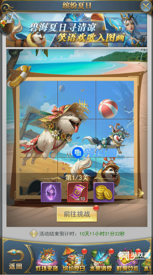 夏日缤纷多好景,记忆隽永图画中。活动期间进行拼图挑战,成功即可获得珍贵大奖!拼图总计3关,首次通关后将发放奖励,奖励不可重复领取。
