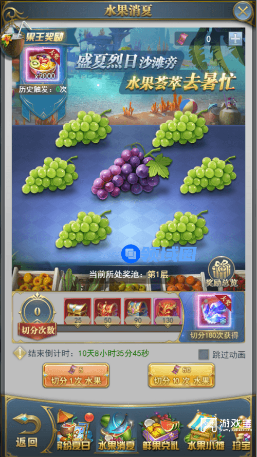 切分水果达到指定次数可领取对应切分进度奖励,若活动结束时未领取会以邮件发放;