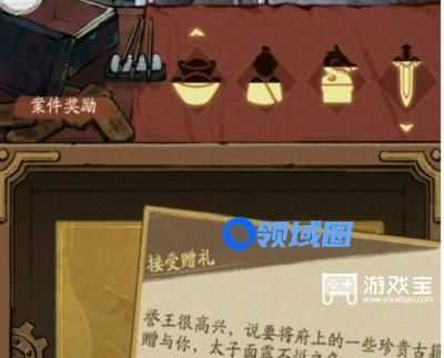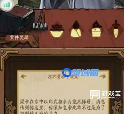 1、首先注意案件奖励的右边有元宝、半人像、龙符、宝剑,刚开局时三个均为半亮。