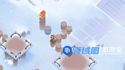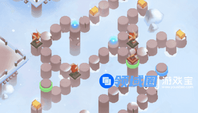1、需要去踩下图所示的绿色柱子,然后黄色柱子就会降下来。就可以通过了。