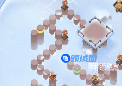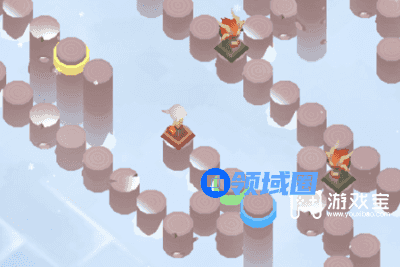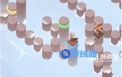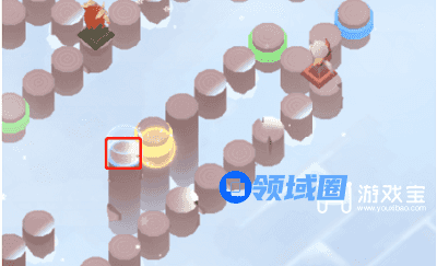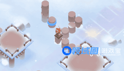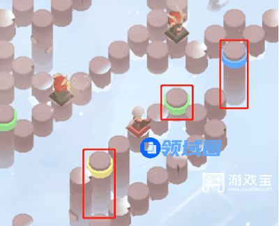 2、一部分的宝箱就可以拿到了,然后回到最初的起点,然后通过切换左右视角,以及踩方块的方式,使得黄蓝绿三色的柱子呈下图的排列方式