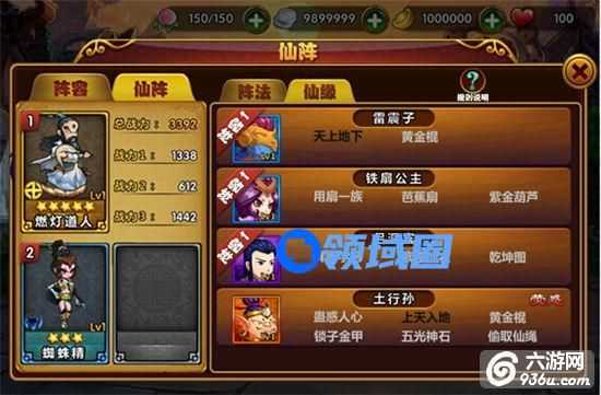 1、仙阵系统是《悟空72变》的基本系统之一,系统入口位于主界面下方系统菜单;