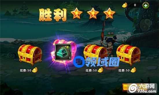 副本胜利后会掉落四个宝箱,玩家可:免费开启一个,花费50元宝开启第二个。