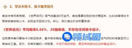 不仅抽数多得吓人,《世界启元》关于抽卡的设计也足以让人一惊,游戏不仅有低于同品类的20抽保底,还有高于同行的6.66%抽卡概率,而且在测试阶段,已经有众多玩家验证了游戏的的确确没有锁卡机制,官方公布的数据一切属实。