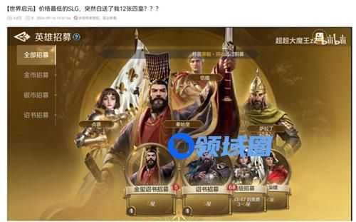 同样被震惊到的,还有各大SLG游戏领域的KOL。在B站上有着数万粉丝,被称为“SLG游戏超级大R”“著名硬核SLG玩家”“联盟盟主”的UP主“超超大魔王zZ”,就是其中之一。为了验证这次福利的真实性,他甚至专门出了一个详细的抽卡视频来现身说法。视频中,经过他亲自全方位地展示了,这次新增抽卡机制的各种细节,并用六张金玺诏书达成期待已久的四圣卡“全面红”的成就后,他和屏幕前的玩家们,都无一例外地被《世界启元》官方“一切为了玩家”的敬业态度所折服。