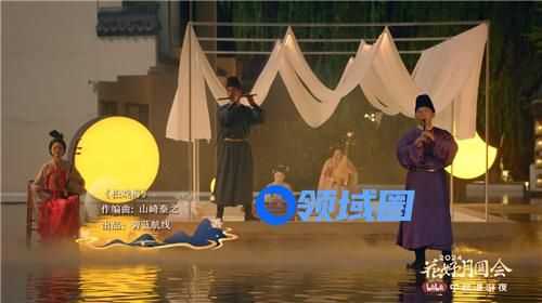 晚会的另一大亮点是二十四伎乐带来的bilibili游戏国风组曲。在乌镇的湖中小亭上,首先上演的是《FGO》《八方异闻卷》组曲(节选)。艺术家们使用传统乐器重新演绎了这些人气手游中的经典配乐,将传统与现代巧妙结合,既保留了原作的激情与动感,又赋予了这些旋律新的生命力。紧随其后的《物华弥新》的游戏主界面曲《浮生偷闲》和《碧蓝航线》的国乐版《松戏梅》,通过优美的旋律搭配动画CG,展示了传统文化在现代游戏文化中的独特魅力。