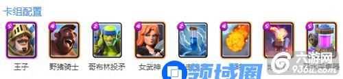 卡组思路:王子是低杯段效果最好的推进卡牌,利用王子冲锋技能及单体伤害高的特性,配合巨人和迷你皮卡能迅速击毁对方护卫塔;高圣水消耗的卡牌较多,下兵较慢,转换时间较长,常规时间最后一分钟圣水收集加速后才能完全发挥此套卡组的优势;防守能力有限,较惧怕人海战术;对下兵的实际把握有一定要求。