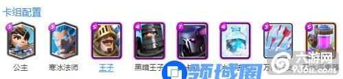 卡组思路:利用公主和寒冰法师这种高属性的卡牌进行防守,能赚取费用差。搭配上圣水采集器达到更多的圣水优势,然后使用皮卡超人+王子+黑暗王子一波强力进攻打得对面毫无还手之力。