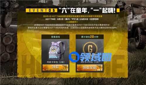 任务五【“六”在童年,“一”起嗨】,则将于6月1日(周六)下午7点至10点59分举行,在活动首日“六”在童年,“一”起嗨!登录就能获得鸡斯卡背包(2级),游戏时长累计20分钟,还可获得300 G-COIN(7天)。
