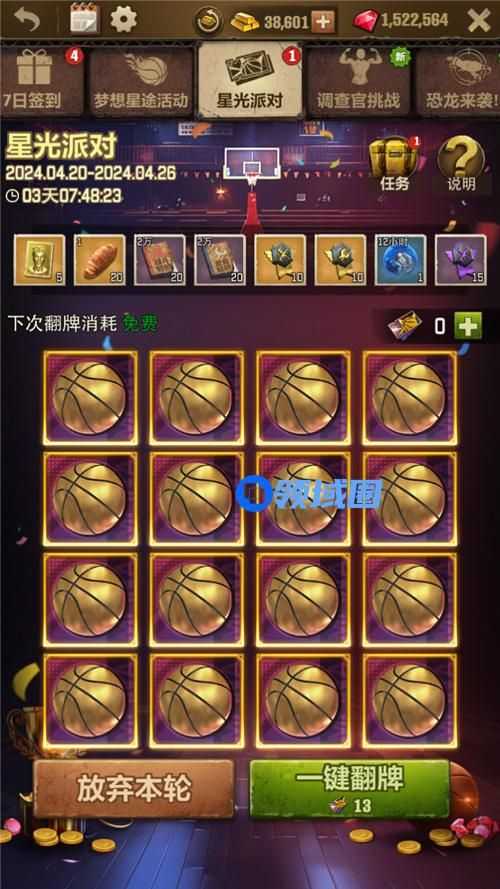 5月13日-5月19日,全服将开启【星光派对】活动。玩家可以通过完成每日任务/消耗钻石/付费购买/免费领取(24小时刷新)等方式获得入场券。
