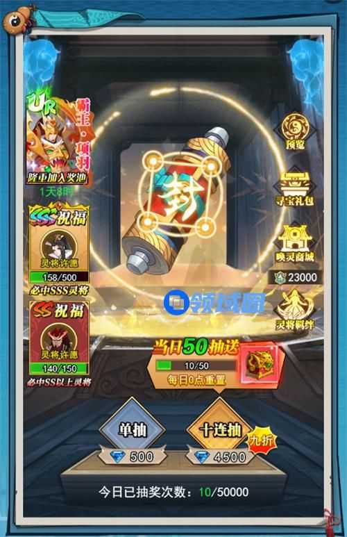 作为《异界深渊:大灵王》中最核心的元素之一,灵将系统是玩家修仙不可或缺的重要助力,尤其是稀有灵将更是万千玩家梦寐以求的理想伙伴,目前游戏里仅有“九天玄女”、“李白龙”、“武王·姬发”三款稀有领奖,每一个都有远超普通灵将的属性加成和能力。当然,后续游戏还会持续增加稀有灵将和普通灵将,为玩家们提供更多更好的选择。