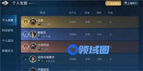 而随着发展的进行,排行榜的争夺也是愈发的激烈,在反应玩家实力的几个榜单中,个人发展上【龙卧长城】的言途以41871的生产力领跑。