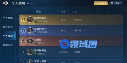 个人战功中,【沉睡的雄狮】的明台亦非台以192884战功领先。