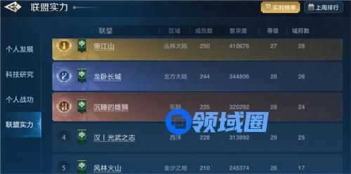 联盟实力上,【帝江山】、【龙卧长城】、【沉睡的雄狮】为前三甲。