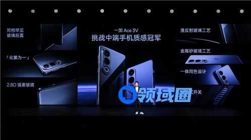 一加 Ace 3V 在材质、工艺、质感等方面实现全面升级,将旗舰质感普及至中端手机。一加 Ace 3V 采用全新「一」字型 Deco 设计,简约又不失高级感。材质上,一加 Ace 3V 全面淘汰塑料后盖,采用了同档罕见的玻璃后盖,并在边缘处精心打磨 2.8D 微弧曲线,手感温润细腻。Deco 区域采用不锈钢镜头保护圈与铝合金底座,坚固可靠。