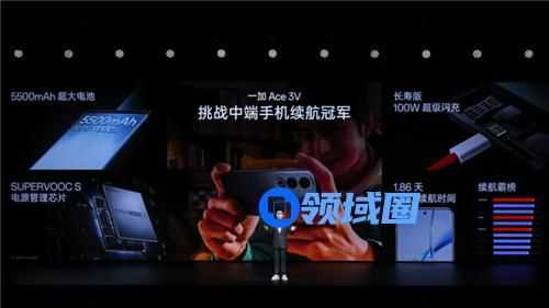 一加 Ace 3V 在续航、屏幕、影像等方面同样带来了旗舰体验的普及。一加 Ace 3V 首次为 5500mAh 大电池 + 100W 长寿版超级闪充的续航组合引入 AI 续航管理技术,基于 SUPERVOOC S 电源管理芯片,将 AI 续航模型深度写入系统底层,实现全局电力合理规划。配合超大电池以及第三代骁龙 7+ 处理器的出色能效表现,一加 Ace 3V 能够实现超 1.86 天的使用时间。
